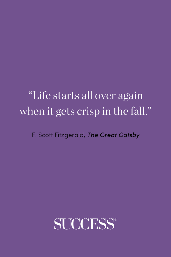 - “Life starts all over again when it gets crisp in the fall.” —F. Scott Fitzgerald, The Great Gatsby