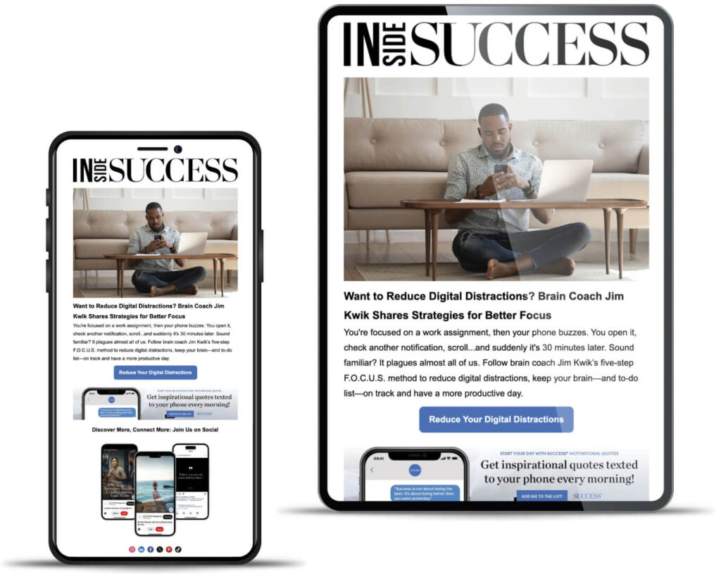 Join a global network of entrepreneurs and changemakers committed to meaningful progress. Each week, Inside SUCCESS® delivers actionable insights you can put to work immediately:
