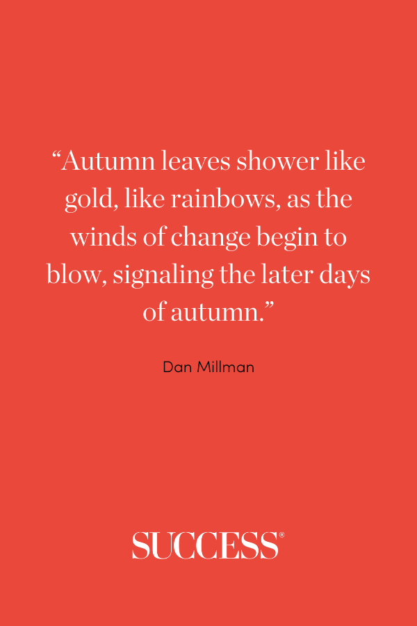 - “Autumn leaves shower like gold, like rainbows, as the winds of change begin to blow, signaling the later days of autumn.” —Dan Millman